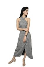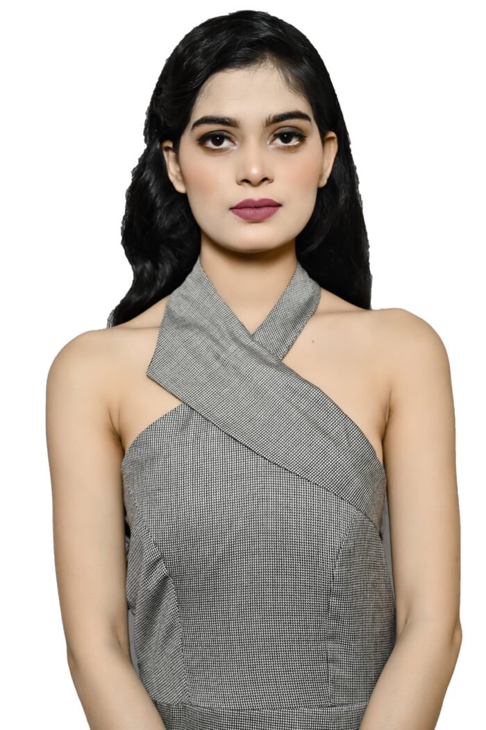 • Style – A hatter neck woollen tweed dress perfect for winters .